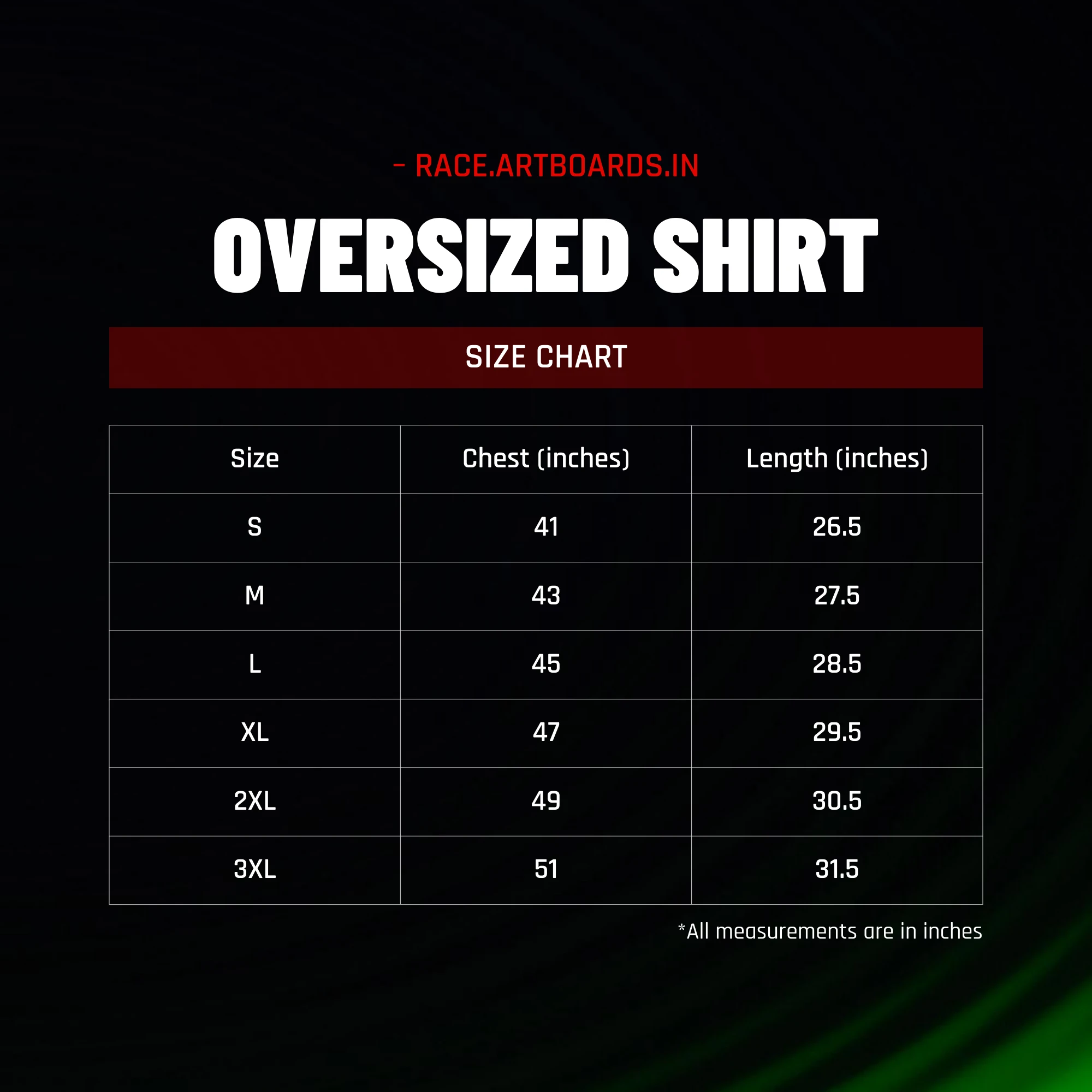 📏 SIZE GUIDE (INCHES)